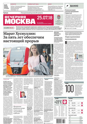 «Вечерняя Москва» — ежедневная российская вечерняя газета, старейшее из вечерних изданий в России, учрежденное в 1923 году. Выходит пять дней в неделю, кроме субботы и воскресенья. Отличается тем, что рассказывает о событиях еще не завершившегося дня. Оперативно освещает хронику и особенности жизни Москвы, охватывает все слои общества и большинство профессиональных и возрастных групп читателей.Издание представлено тремя выпусками – утренним ежедневным, вечерним (выходит три раза в неделю), еженедельным (выходит по четвергам).