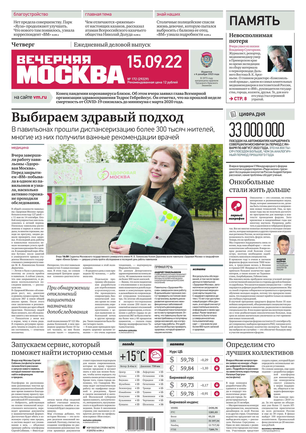 «Вечерняя Москва» — ежедневная российская вечерняя газета, старейшее из вечерних изданий в России, учрежденное в 1923 году. Выходит пять дней в неделю, кроме субботы и воскресенья. Отличается тем, что рассказывает о событиях еще не завершившегося дня. Оперативно освещает хронику и особенности жизни Москвы, охватывает все слои общества и большинство профессиональных и возрастных групп читателей.Издание представлено тремя выпусками – утренним ежедневным, вечерним (выходит три раза в неделю), еженедельным (выходит по четвергам).