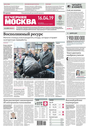 «Вечерняя Москва» — ежедневная российская вечерняя газета, старейшее из вечерних изданий в России, учрежденное в 1923 году. Выходит пять дней в неделю, кроме субботы и воскресенья. Отличается тем, что рассказывает о событиях еще не завершившегося дня. Оперативно освещает хронику и особенности жизни Москвы, охватывает все слои общества и большинство профессиональных и возрастных групп читателей.Издание представлено тремя выпусками – утренним ежедневным, вечерним (выходит три раза в неделю), еженедельным (выходит по четвергам).